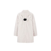 A unisex mid-length plush puffer coat featuring an eye-catching doll detail on the back, blending playful character with practical warmth. Crafted with soft fleece-like texture and padded insulation, this coat delivers cozy protection for the autumn–winter season. The relaxed silhouette and tactile surface create a statement outerwear piece perfect for everyday wear and expressive street styling.