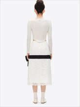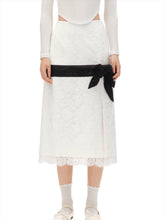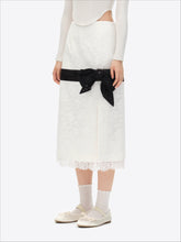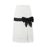 An elegant skirt from the 13 DE MARZO x Reverie by Caroline Hú collaboration, designed with romantic bow accents and delicate lace detailing. The clean midi-length silhouette is balanced by soft feminine elements, creating a refined yet modern aesthetic. Crafted to flatter the waist and hips, this piece transitions effortlessly from everyday styling to elevated occasions.