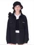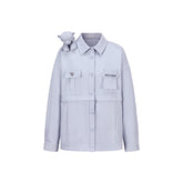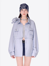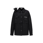 A unisex statement piece from the 13 DE MARZO 2026 Early Spring collection, this utility-style shirt jacket is adorned with all-over faux crystal embellishments for a bold yet refined look. Designed with a classic turnover collar and workwear-inspired structure, it merges industrial elements with elevated fashion detailing. The relaxed fit allows it to be worn as both a shirt and a lightweight outer layer, delivering strong visual impact with versatile styling appeal.