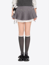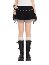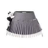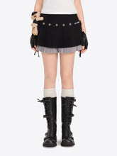 Rhinestone-Embellished Double-Layer Pleated Mini Skirt