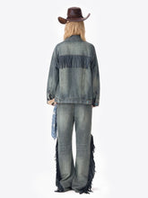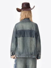 A unisex denim jacket inspired by classic Western styling, featuring playful fringe details and a relaxed, easy-to-layer silhouette. Crafted in soft cotton denim, this autumn–winter outerwear piece blends rugged charm with contemporary street style.