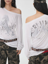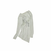 This round-neck long sleeve top features an asymmetric draped silhouette with a slim-fit base pattern, breaking conventional tailoring through oblique-cut construction that creates natural fluidity and elegant layering. The design showcases an original vintage-style equestrian print adorned with hand-set crystal rhinestones at the center for a touch of brilliance. Double-layered plush trimming at the neckline and cuffs adds visual depth and refined craftsmanship. Made from a premium Lenzing lyocell and cotton-wool blended fabric, it combines silky smooth drape, warmth, elasticity, and resilience—offering both artistic beauty and superior comfort as a statement layering essential.