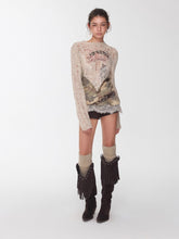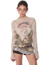 This cropped V-neck cami features the brand’s custom lyocell camo fabric, designed in a relaxed boxy silhouette that drapes effortlessly on the body. The tonal lace trim along the neckline and hem adds a touch of softness and femininity to the utilitarian base. The elongated V-neckline enhances layering depth, while vintage-style rivet and rhinestone embellishments bring a subtle yet striking accent. The camo print and lace contrast blend sweetness with edge, creating an easy-to-style piece that fits seamlessly into casual or layered streetwear looks.