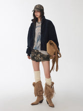This fitted short jacket is designed with a structured silhouette that ensures a sharp, flattering look. The dual-zip front allows versatile styling and collar variations, while the hem and cuffs feature a creative distressed rib-knit finish — adding a hint of street-style attitude to the soft fleece texture. Crafted from high-quality lamb-style fleece fabric, it offers a plush, warm touch that feels gentle against the skin. The overall design balances material richness and refined detailing, making it a must-have piece that blends effortlessly into everyday wear while highlighting modern individuality.