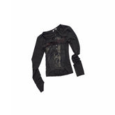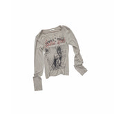 A slim-fit Henley-style knit top that perfectly blends vintage elegance with modern texture. Featuring a classic Henley neckline with antique silver-toned metal buttons, it highlights the neck while adding a refined retro touch. The original animal-series newspaper print is rendered using direct-spray technology, preserving color vibrancy and detail for a visually striking effect. The contrast print design enhances dimension and personality, making this piece a natural statement in any look.