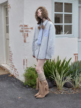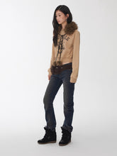 This reversible eco-friendly faux fur ear muff collar combines warmth and playful charm. The outer layer is crafted from fluffy faux rabbit fur for a voluminous, plush texture, while the inner layer features soft sherpa fleece that feels gentle against the skin and locks in warmth. The dual-sided construction offers both visual appeal and practicality. Decorated with braided drawstring ties and fluffy pom-poms, it adds a touch of sweetness and youthful elegance. Available in classic black and natural beige, this versatile winter accessory pairs effortlessly with various styles, bringing warmth and cozy sophistication to cold-weather looks.