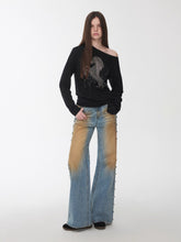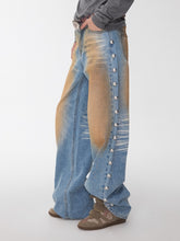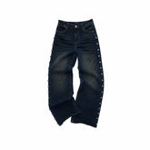 Crafted in a mid-low waist relaxed silhouette, these straight-leg jeans feature custom half-round rivet embellishments along the side seams, enhancing the leg shape while maintaining a casual, effortless look. The fabric is a dense diagonal cotton weave without stretch, offering a natural structured drape. Finished with a full-body washed vintage treatment and paired with handcrafted localized mud-dyeing, the jeans display a unique texture and rich retro vibe — perfectly balancing style and comfort.