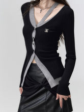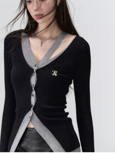The VIAPITTI cardigan features an asymmetric design, combining two tones for a chic and edgy look. Its unique front design with a deep neckline enhances its appeal, making it perfect for layering or standalone wear. Ideal for autumn and spring, this sweater combines warmth and fashion with its bodycon fit.