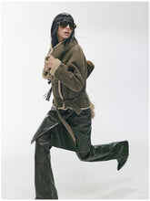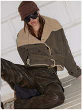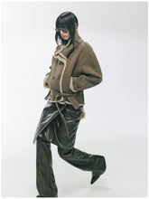 A statement short coat that fuses punk attitude with modern winter functionality. Designed with bold contrast fleece paneling and an oversized turn-down collar, this shearling-style piece is accented with metal buckle hardware for a sharp, industrial edge. The cropped silhouette balances volume and structure, delivering warmth without heaviness while making a strong visual impact—perfect for standout cold-weather layering.