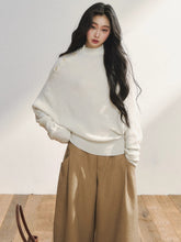 An elegant reinterpretation of the classic knitwear, this asymmetric shoulder sweater centers on a “half-exposed shoulder” design that subtly reveals the collarbone and shoulder lines. Breaking away from the traditional conservatism of knitwear, it strikes the perfect balance between softness and sensuality. The ribbed knit texture ensures warmth and comfort, while the slanted cut and delicate button detailing enhance the feminine silhouette. A versatile piece that effortlessly transitions from casual to refined styling — modern, minimal, and quietly alluring.