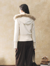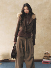 Fur Collar Faux-Layered Wool-Blend Jacket