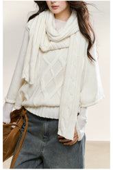 This design embodies the concept of “Warmth in Layers, Beauty in Balance.” Featuring a soft inner fitted long-sleeve knit and an outer loose pullover with classic rib-knit texture, it creates a harmonious contrast of comfort and structure. The tonal matching scarf completes the look with cozy elegance, adding visual depth while maintaining simplicity. Perfect for casual outings or laid-back urban styling, this layered sweater set delivers both warmth and effortless sophistication — infusing autumn and winter wear with refined comfort and versatility.