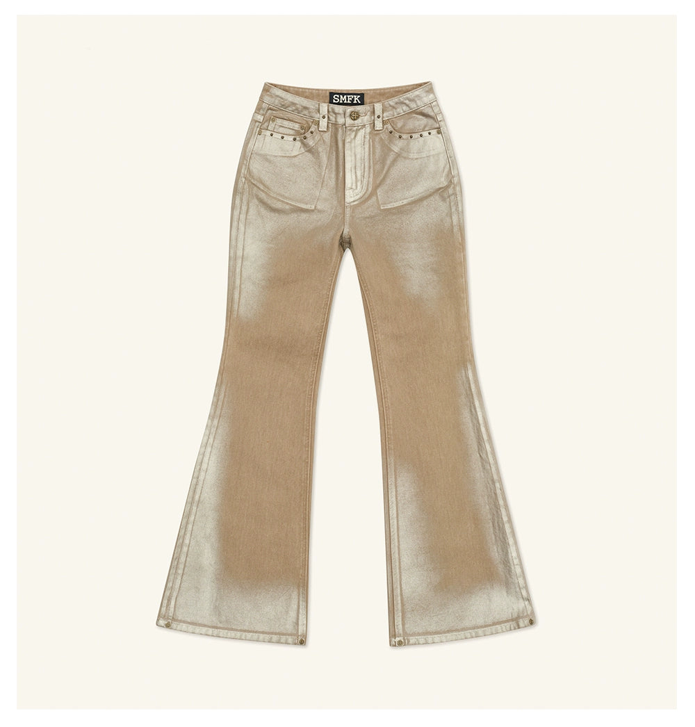 Ancient Myth Handcrafted Gold Wax Mid-rise Flared Jeans - CHINASQUAD