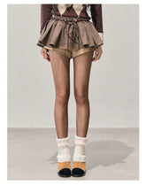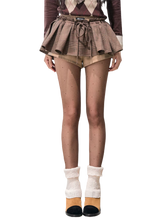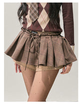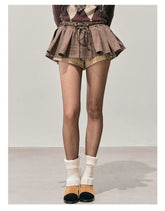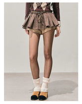 This mini skirt features a voluminous A-line silhouette inspired by American retro styling, creating a playful yet slimming effect. Designed with a structured puff shape, it enhances proportions while offering comfortable wear. The plaid-textured fabric adds visual depth and a seasonal feel, making it ideal for autumn and winter styling. Designed as a skirt-short hybrid, it combines the feminine look of a skirt with the ease and confidence of shorts underneath—perfect for everyday outfits with a statement edge.