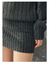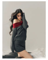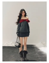 This winter knit mini dress features a wide off-shoulder neckline that highlights the collarbone, blending American casual attitude with a subtly feminine edge. Designed with a fitted, body-hugging silhouette, it accentuates natural curves while maintaining comfort through its soft, elastic knit construction. The clean lines and minimalist structure make it an effortless statement piece, perfect for cold-season styling with coats or boots for a sleek, modern look.