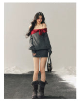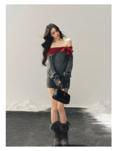 Off-Shoulder American-Style Knit Mini Dress