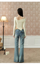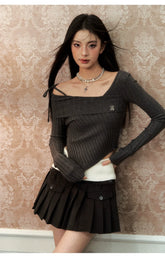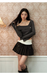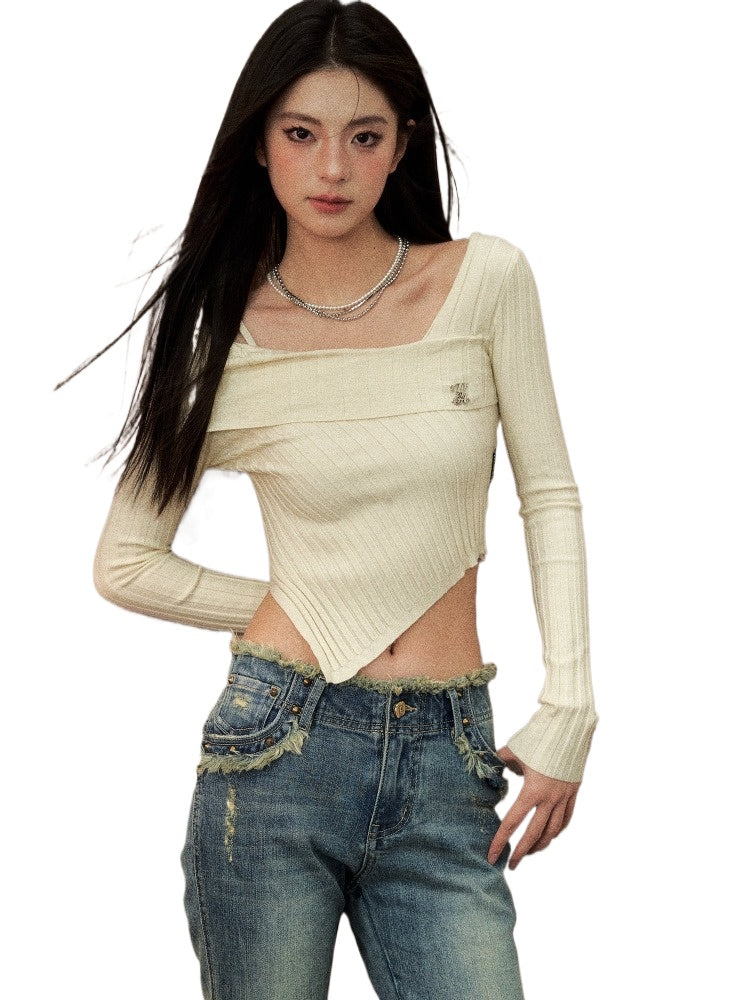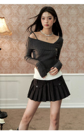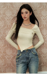Apricot & Gray Off-shoulder Asymmetric Sweater - CHINASQUAD