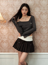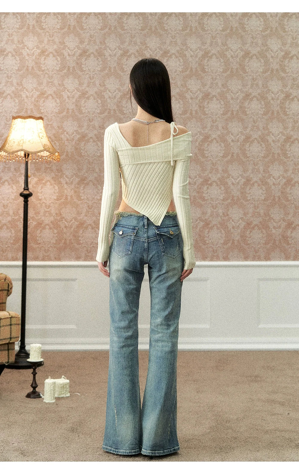 Apricot & Gray Off-shoulder Asymmetric Sweater