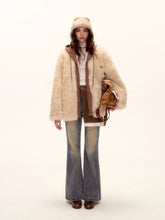 A statement winter jacket combining a cozy hooded sweatshirt base with plush faux-shearling panels and leather-touch accents for a rich tactile contrast. Designed with an oversized silhouette, the piece feels soft, warm, and enveloping while maintaining a clean, high-end aesthetic. The integrated hood adds practicality, and the patchwork textures elevate the overall design, making it a standout layering piece for cold-weather styling.