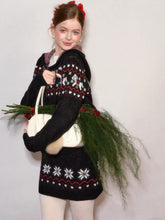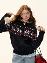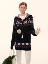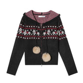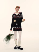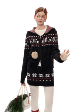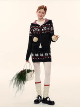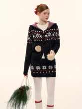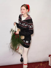 This AsGony two-piece set features a charming Fair Isle–inspired design with snowflake and pony motifs, delivering a cozy yet playful winter aesthetic. The hooded knit cardigan is crafted with a relaxed silhouette, offering warmth and effortless layering appeal, while the matching mini skirt features an elastic waistband for comfort and a flattering fit. Blending vintage charm with modern casual styling, this wool-blend set is ideal for festive wear and everyday autumn–winter outfits alike.