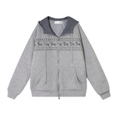 A cozy two-piece athleisure set featuring a padded hoodie with Fair Isle–inspired print and plaid patchwork, paired with relaxed wide-leg pants. The hoodie combines warmth and style through its quilted construction and contrasting textures, while the pants offer effortless comfort with a loose, sporty silhouette. This coordinated set blends vintage winter aesthetics with everyday practicality, perfect for casual outings, lounging, or warm layered looks.