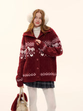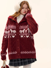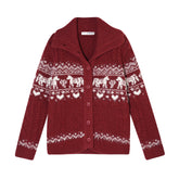 This AsGony knit cardigan features a playful Fair Isle pattern with a charming pony motif, creating a strong Christmas and holiday atmosphere. Designed in a relaxed, loose-fit silhouette, it offers effortless comfort and an easy layering option for winter styling. The cardigan style adds versatility, while the vibrant red option makes it especially suitable for festive occasions and Lunar New Year looks. Cozy, eye-catching, and full of seasonal charm, it’s a statement knit for cold-weather wardrobes.