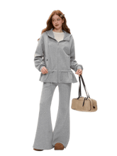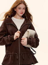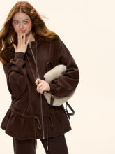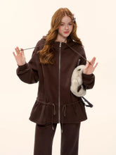 A refined, fashion-forward hoodie jacket designed with a sculptural cocoon silhouette for a flattering, slimming effect. Featuring adjustable drawstring detailing and a softly structured hood, this piece balances comfort with elevated style. The fleece-lined construction provides warmth and softness, while the voluminous shape adds a modern, high-end feel—perfect for casual layering with a polished edge during autumn and winter.