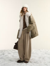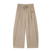 A pair of American retro–inspired lounge pants designed with a soft, brushed fleece texture and a relaxed curved-leg silhouette. Featuring a comfortable elastic waistband with adjustable drawstring, these pants offer an effortless laid-back fit while visually slimming the legs. The solid-color design enhances versatility, making them an easy match for casual tops, knits, or outerwear—perfect for everyday wear with a cozy, elevated feel.