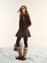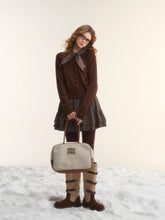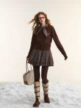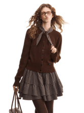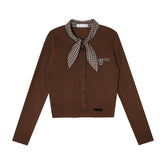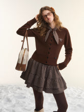 A charming knit top designed with playful bunny-ear tie details and classic plaid patchwork, blending a chic French-inspired aesthetic with trending Maillard tones. Crafted in a soft wool-blend knit, this piece offers a refined yet youthful look. The fitted silhouette enhances the figure, while the layered textures and decorative ties add visual depth, making it a standout choice for both casual and styled outfits.