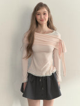 Asymmetric Off-Shoulder Bow-Tie Knit T-Shirt