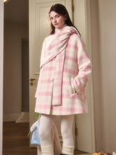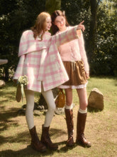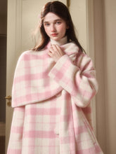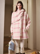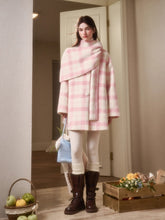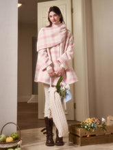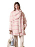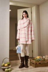 Baby Pink Raspberry Check Wool-Like Cape Coat