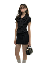 Black Striped Collegiate-style Butterfly Collar Shirt