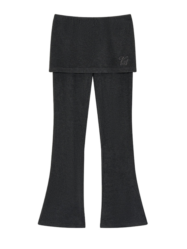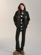 These black pants are designed with a slim, streamlined fit that accentuates the legs. They feature a two-piece set style, offering versatility. The loose-fitting, flowing cut emphasizes a fluid leg line, while the design allows for flexible pairing with both casual tops and more structured outfits.
