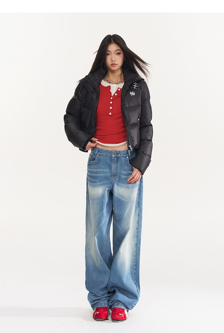 Black & White Pearl Down Short Jacket - CHINASQUAD