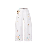 A playful yet chic piece from the 2025 Fall/Winter collection, these casual wide-leg jeans feature a signature teddy bear applique that adds a fun twist to a relaxed silhouette. Crafted in premium cotton denim, the pants combine comfort and fashion effortlessly, making them an easy match with any top for a modern, street-inspired look.
