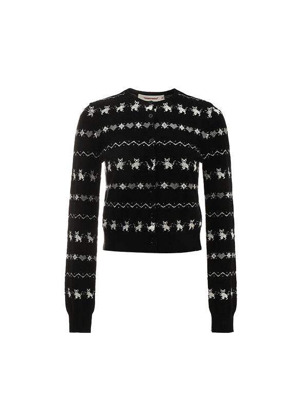 Cat Jacquard Slim-Fit Knit Cardigan & Scarf