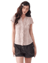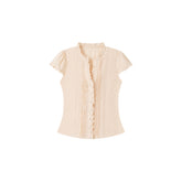 Ruffle Lace Waist-Fit Short Sleeve Blouse