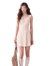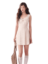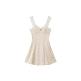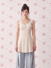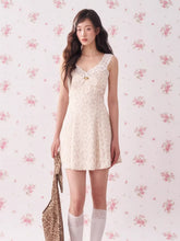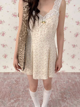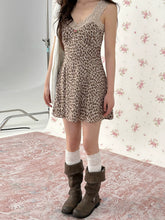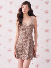 This vintage-inspired mini dress features a delicate lace-trim slip design layered with subtle leopard-pattern accents, creating a bold yet feminine aesthetic. The V-neckline enhances the neckline and collarbone, while the fitted bodice gently contours the waist for a flattering silhouette. Flowing into an A-line skirt, the dress creates graceful movement and balanced proportions, making it especially suitable for petite frames. The lightweight fabric ensures a smooth drape and comfortable wear, perfect for both casual styling and elevated day-to-evening looks.