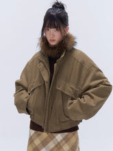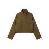 This vintage-inspired short jacket features a structured workwear silhouette with a retro washed finish. Designed for autumn and winter wear, it offers a boxy fit with a warm inner padding, balancing practicality and street-style aesthetics. The overall look is casual yet refined, suitable for layering and everyday styling.