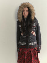 Charcoal Fair Isle Puppy Faux Fur Collar Knit Jacket