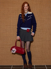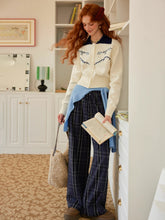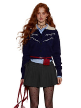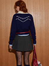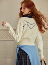 A retro-inspired cropped cardigan featuring delicate embroidery and a contrasting collar for a refined, stylish touch. Designed with a single-breasted button front and a subtly cinched waist, this piece flatters the figure while maintaining a relaxed, versatile silhouette. Perfect for layering or wearing alone, it adds a sophisticated charm to both casual and polished outfits.