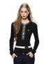 A refined and elegant knit top designed for winter layering. Crafted with a soft, stretchy fabric blend, it features a classic round neckline and contrasting trim accents that enhance the silhouette. The waist belt design adds structure and sophistication, perfectly balancing femininity and modernity. Ideal for pairing with skirts or tailored pants for a chic, polished look.