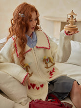 A cozy and refined knit jacket featuring a charming pony jacquard pattern and contrasting trims for a playful yet elegant touch. The collared neckline and zip-up front design lend it a modern, sporty edge, while the soft wool-blend fabric offers warmth and comfort. This piece perfectly balances sophistication and casual ease — ideal for creating stylish, cozy looks during transitional seasons.