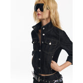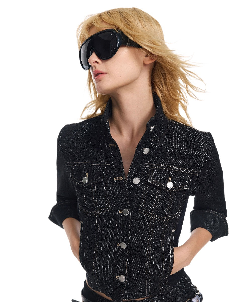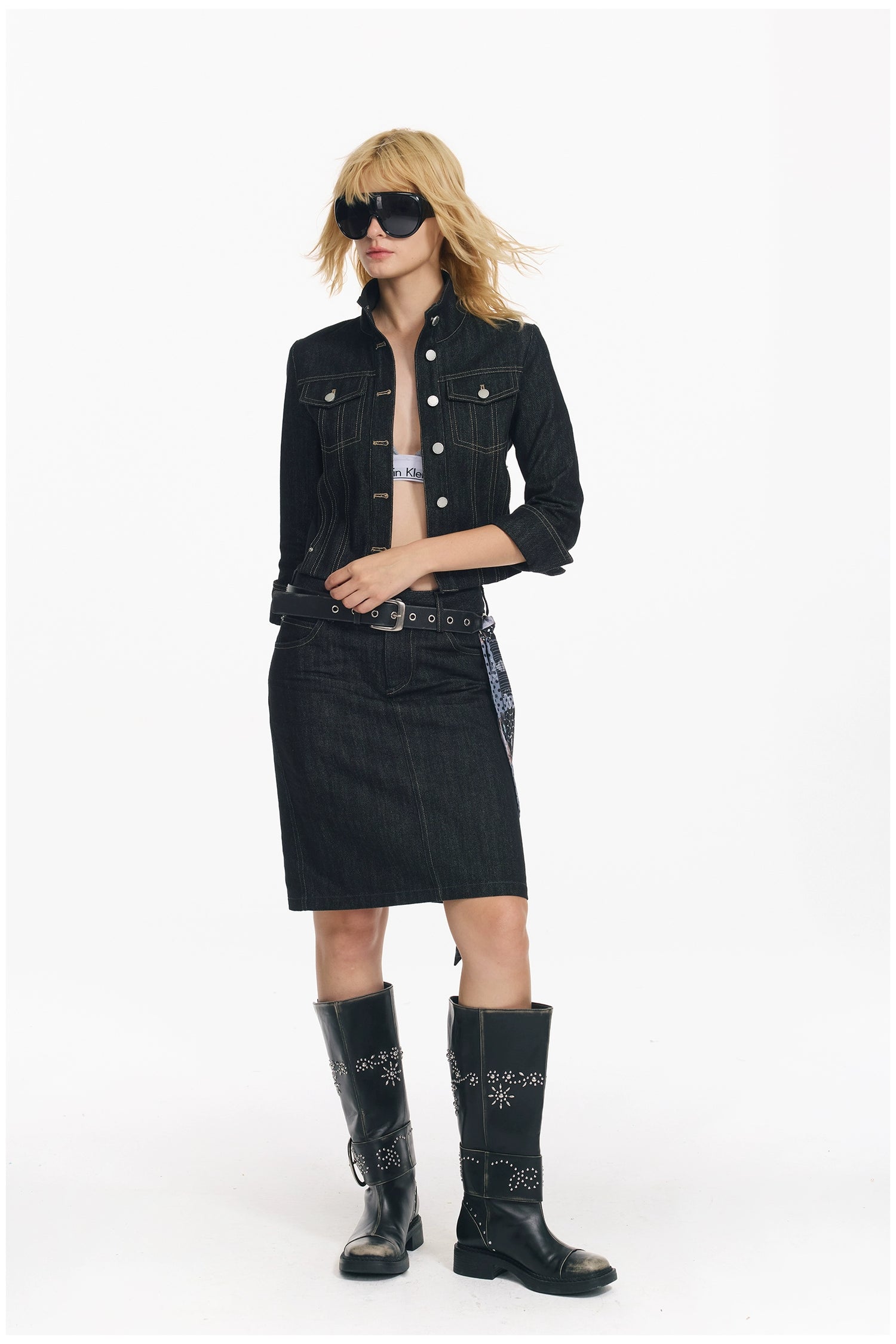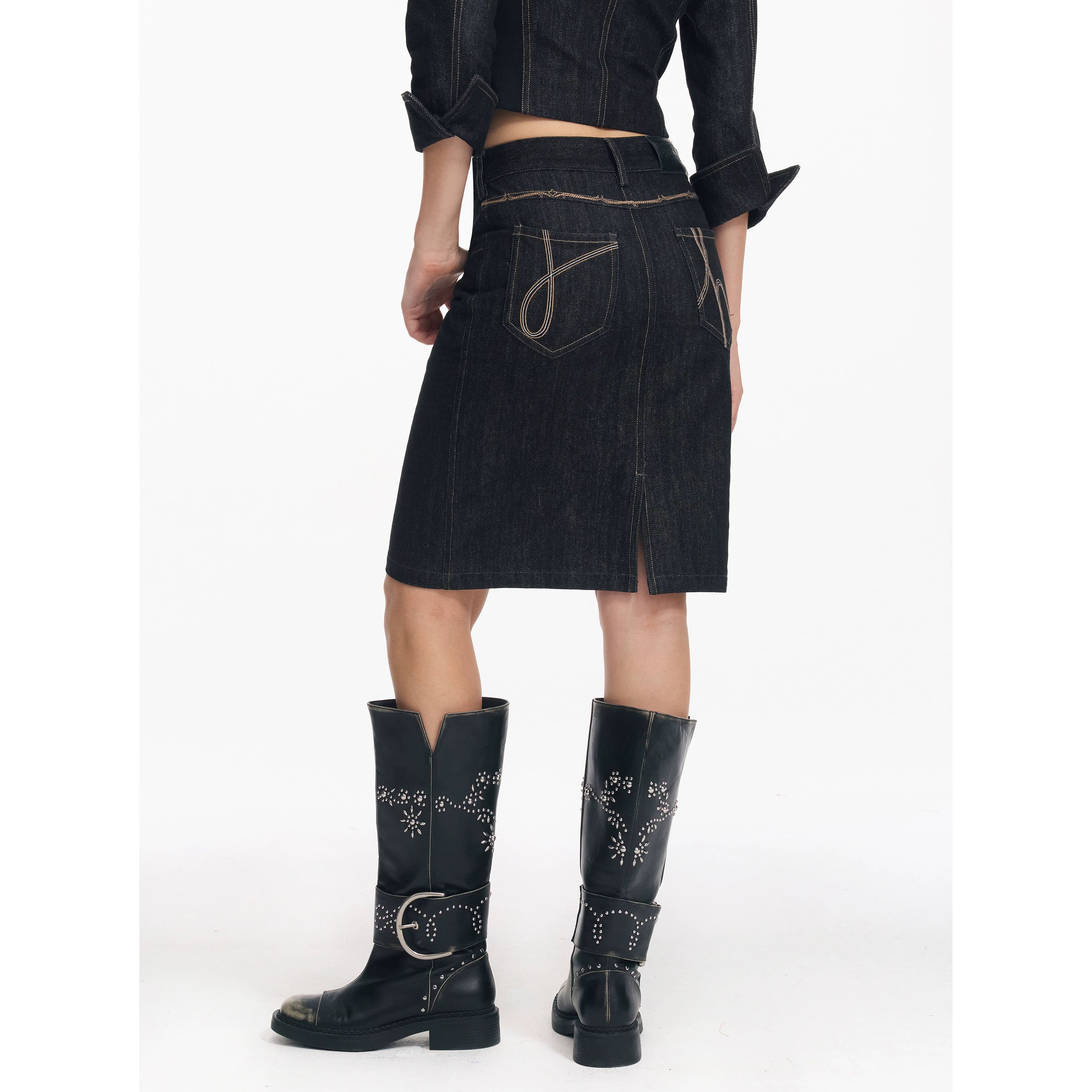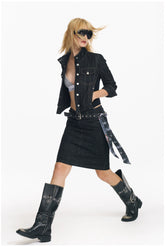 Cropped Stripe Stitch Denim Jacket & Skirt Set - CHINASQUAD