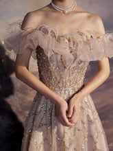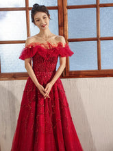 Feathered Scarlet Embellished Off-Shoulder Gown