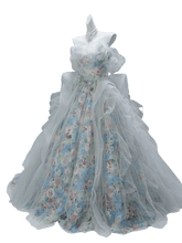 his enchanting floral couture gown is a non-market edition, meticulously crafted with intricate heavy workmanship. Exclusively available by custom order, this gown ensures a perfect fit tailored to your height, weight, and measurements, creating a unique masterpiece for you.