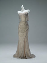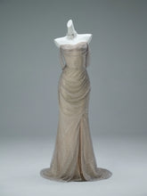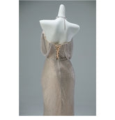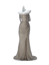 The gown, shown without crinoline, presents a striking silhouette, enhanced by a sophisticated layering design on the skirt that creates a perfect shape. The 12 fishbone boning provides exceptional support, sculpting your figure with precision. The outer layers are adorned with handcrafted beaded details, lending a sophisticated texture with a slightly firm quality. Please note that some beading may shed during the first few uses, which is normal and does not impact the gown's overall visual impact.