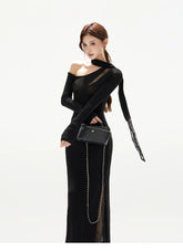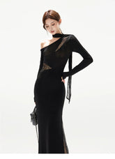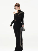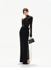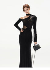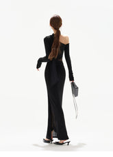 Asymmetric One-Shoulder Knit Evening Dress