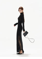 This original designer maxi dress delivers refined evening glamour with a subtle shimmer finish and sensual asymmetry. Designed with a one-shoulder silhouette, it features delicate lace paneling that adds texture and a softly luminous effect. The slim-fit knit construction sculpts the body, accentuating the waist and elongating the figure, while the asymmetric sleeve design creates modern visual tension. Elegant yet alluring, this dress is ideal for banquets, evening events, or statement occasions that call for confident sophistication and feminine allure.
