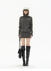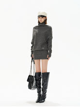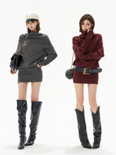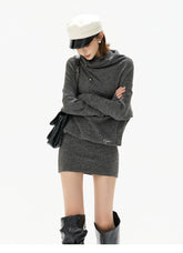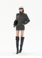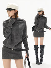 This CYNR original design knit mini dress blends sensual elegance with a relaxed, fashion-forward silhouette. Featuring a soft draped cowl neckline and an irregular asymmetric design, it creates visual depth while highlighting the neckline and shoulders. The batwing sleeves add a laid-back, effortless feel, perfectly balanced by the figure-hugging skirt that accentuates the waist and hips. Crafted from a wool-blend knit with comfortable stretch, this dress offers warmth, softness, and a flattering slimming effect—ideal for chic everyday wear or styled up for evening looks.